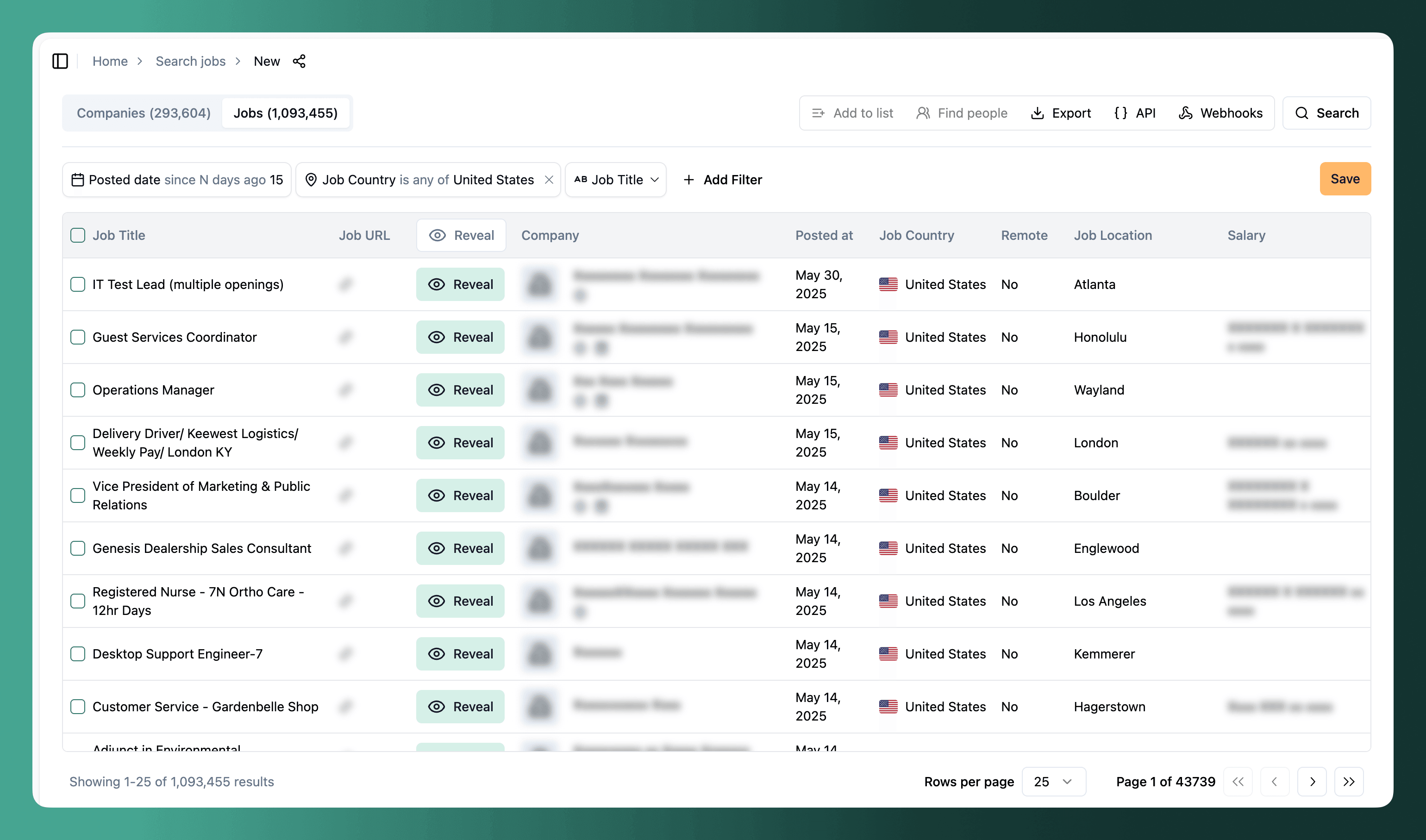When doing a job search with preview mode, the response will return all fields but the description, url, final_url, source_url, company, company_domain, company_object.name, company_object.domain, company_object.linkedin_url, company_object.linkedin_id, company_object.url, company_object.long_description, company_object.seo_description, company_object.possible_domains fields will be blurred.