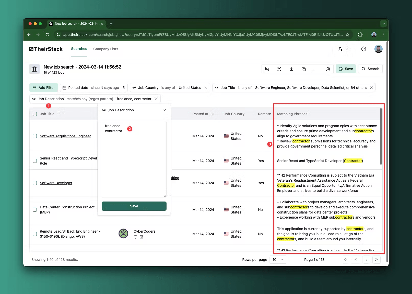 After a couple of seconds, you should be able to see the last jobs posted for that specific search.