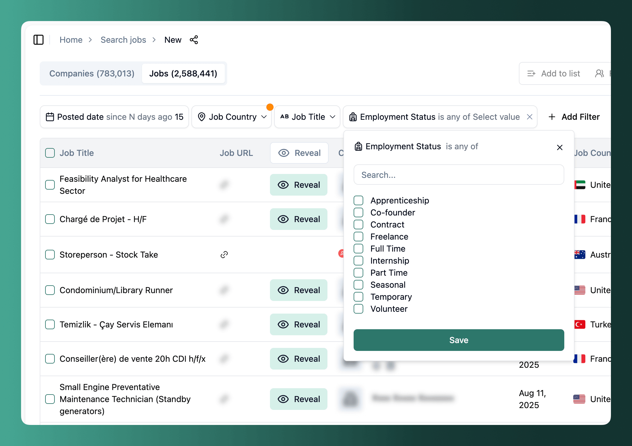 New employment_statuses option for property_exists_or and property_exists_and in the Jobs Search endpoint and Company Search endpoint. Filter to only jobs where employment status information is available and populated.