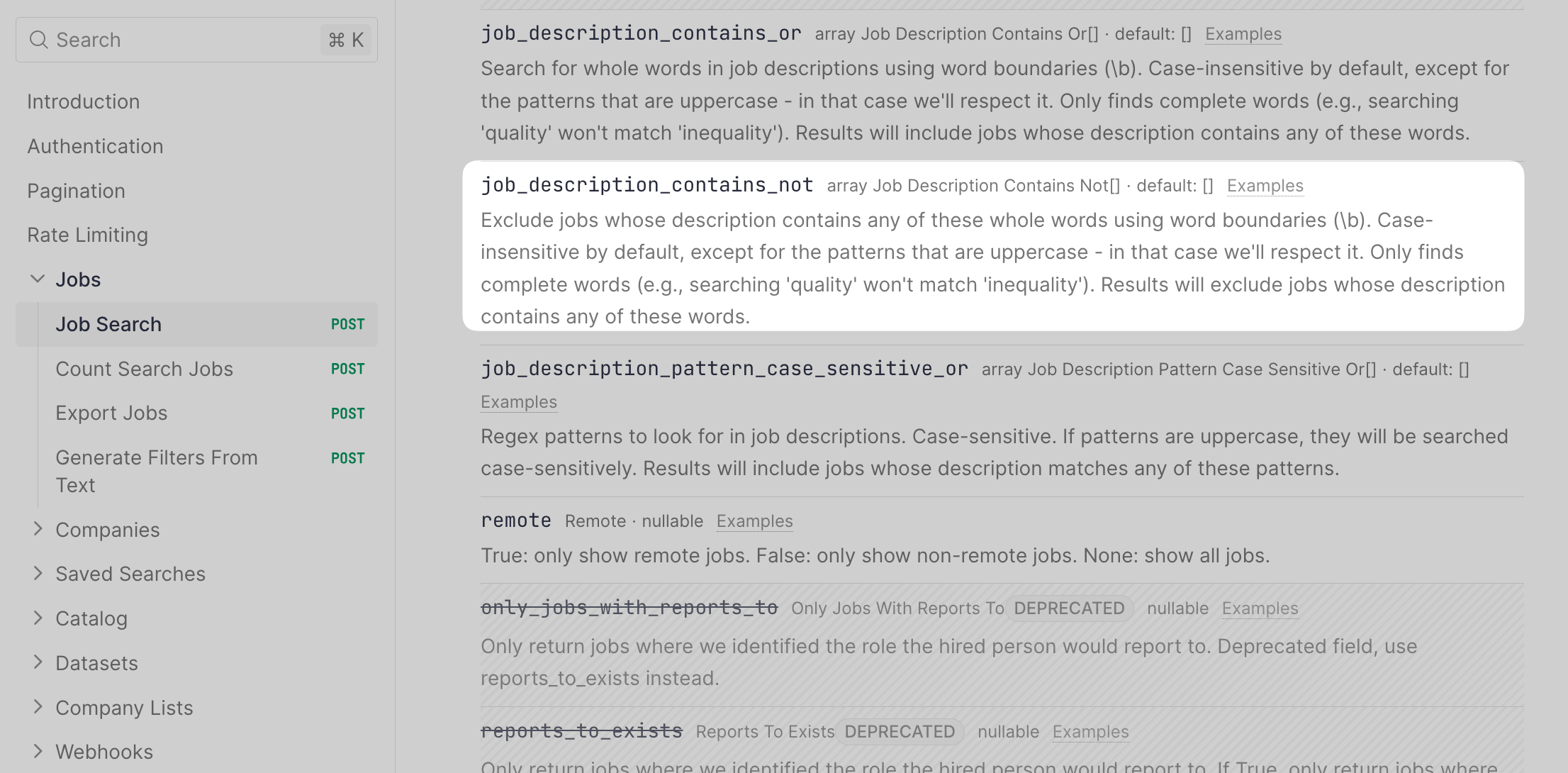 We've added a new exclusion filter called job_description_contains_not to the Jobs Search endpoint.